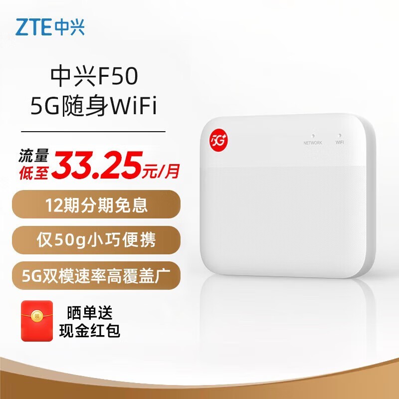 中兴F50 5G随身WiFi移动UFi京东促销到手仅349元