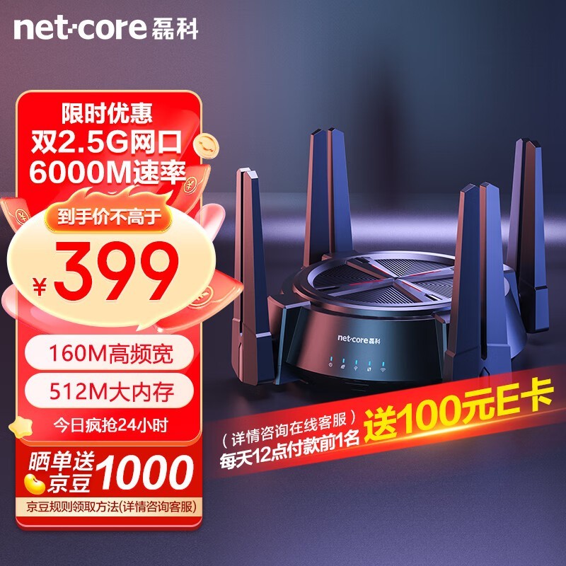 磊科N60PRO AX6000千兆无线路由器双2.5G口512M内存京东389元好价