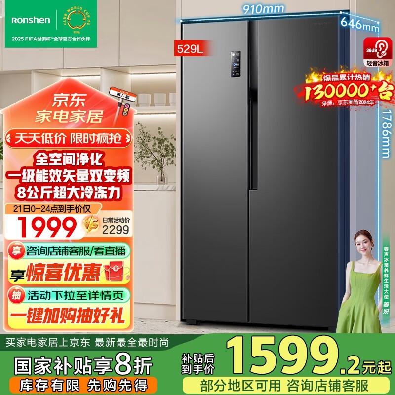 容声离子净味冰箱529L双变频风冷无霜对开门节能静音