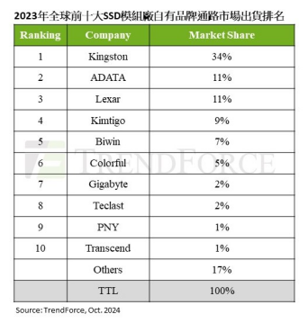 雷克沙在全球存储市场的地位早已不容小觑。根据全球知名咨询机构TrendForce集邦咨询公布的2023年自有品牌渠道通路市场全球出货营收榜单,雷克沙以11%的市场份额位列全球第三。这一成绩不仅彰显了雷克沙在固态硬盘(SSD)领域的强大竞争力,更是其作为一线品牌实力的有力证明。