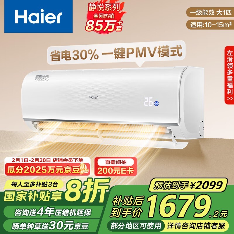 海尔静悦空调KFR-26GW一级能效变频仅1642元