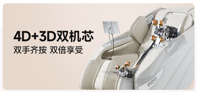 行业先进的双机芯配置,4D气囊机芯负责肩颈背的柔和揉捏,3D劲感机芯精准击打腰臀,实现“分区精准护理”。4D机芯能够模拟出更加逼真的按摩手法,如舒缓的揉捏、有力的推拿、节奏恰到好处的敲击等。3D机芯则提供了更加立体的按摩感受,自动调整按摩的力度和角度,确保每一次按摩都能达到最佳效果。