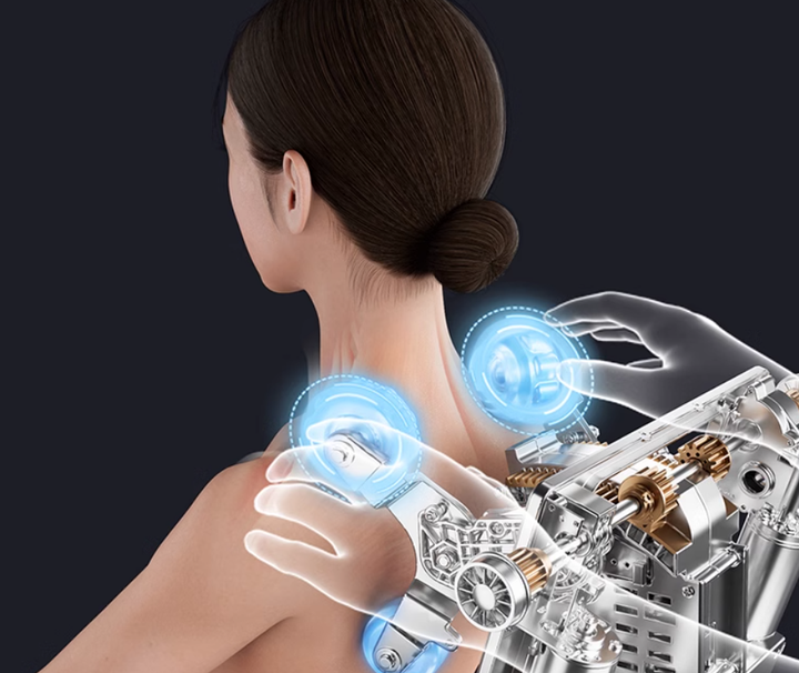 4D精准精钢机芯:搭载最新4D精钢机芯,创新凸点硅胶按摩头设计,支持13种专业手法(如揉捏、推拿)和5档力度调节,可模拟真人按摩师力道,深层缓解肩颈、腰臀疲劳,抓捏触感,力道柔韧有劲,让按摩更加精准高效。