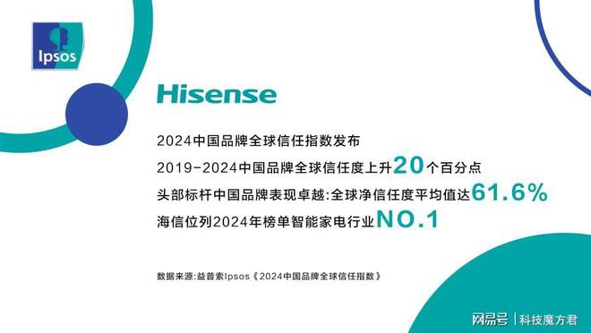 根据益普索最新发布的调研数据,海信在《2024中国品牌全球信任指数》排行榜中位列智能家电行业第一位,是唯一入选前十名的智能家电品牌。