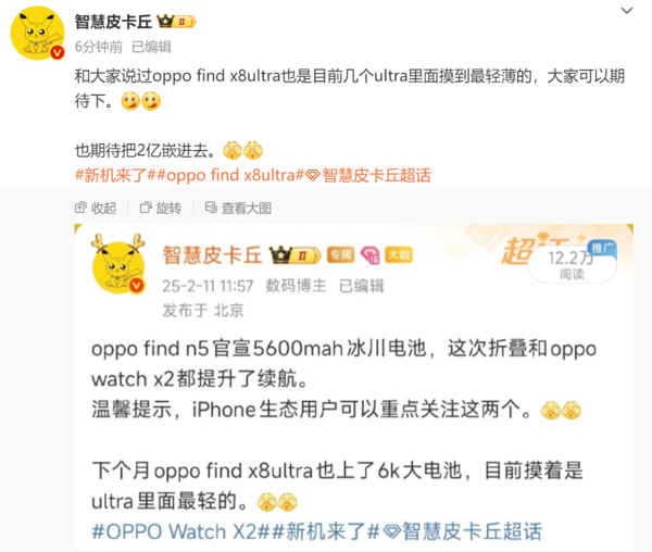 曝OPPO Find X8 Ultra超大杯新机中最轻薄 还有6K+电池