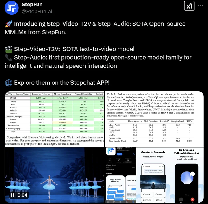 前几天阶跃星辰还开源了Step-Video-T2V 视频生成模型和 Step-Audio 语音模型,成为六小龙最快拥抱开源的其中一位,但和 DeepSeek 不同的是,阶跃星辰开源的模型均为多模态,而这也是 DeepSeek 还没展现的能力。