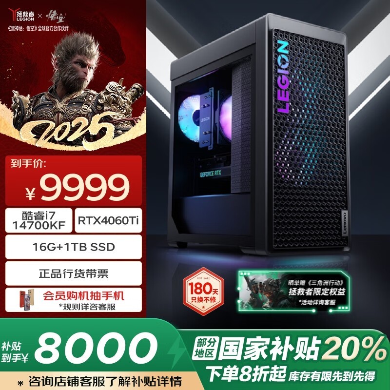 联想拯救者刃7000K 2024款游戏台式机i7-14700KF/RTX4060Ti