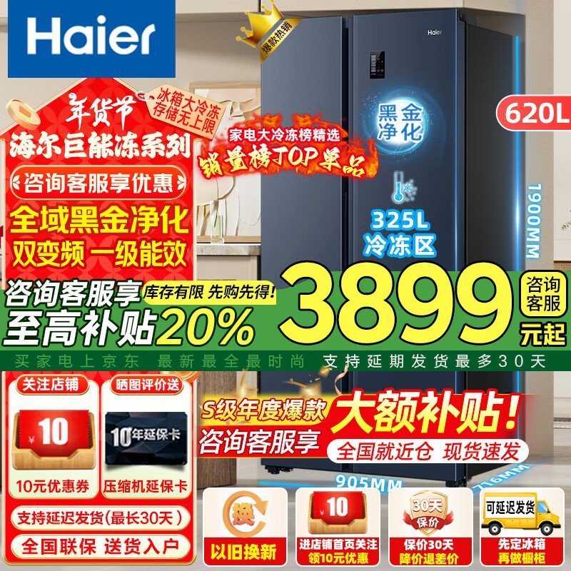 海尔620L双开门冰箱大容量静音节能促销中