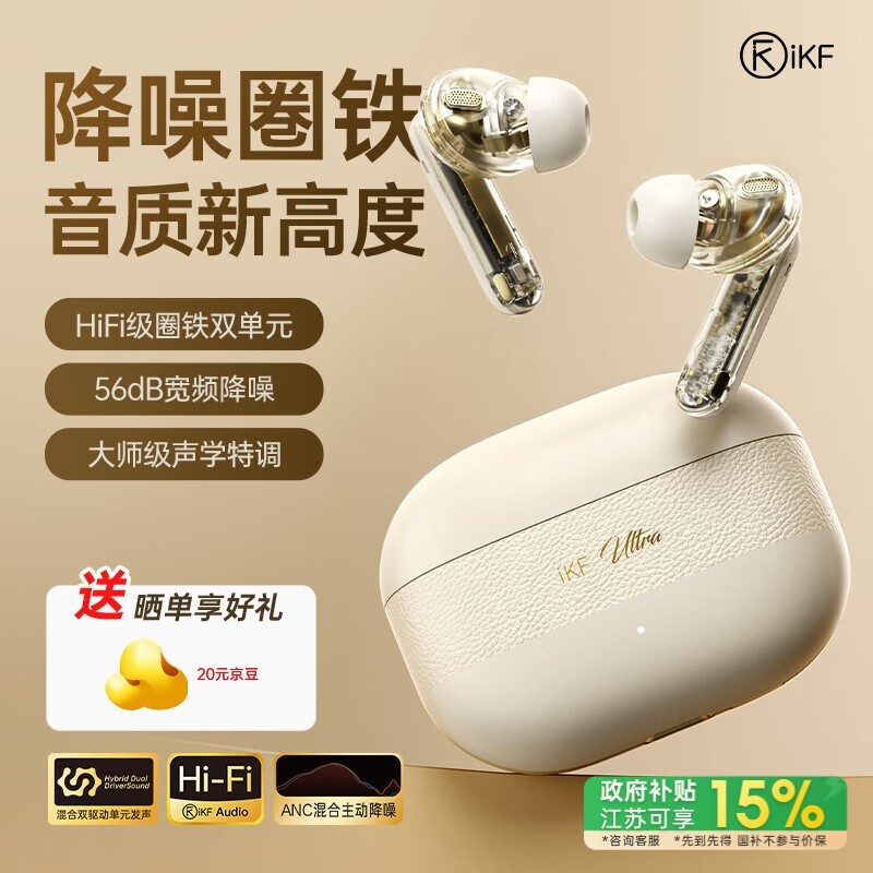 iKF Ultra真无线圈铁主动降噪耳机云岩白仅330元