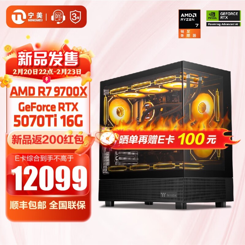 宁美DIY主机R7-9700X/32GB/1TB/RTX5070Ti促销