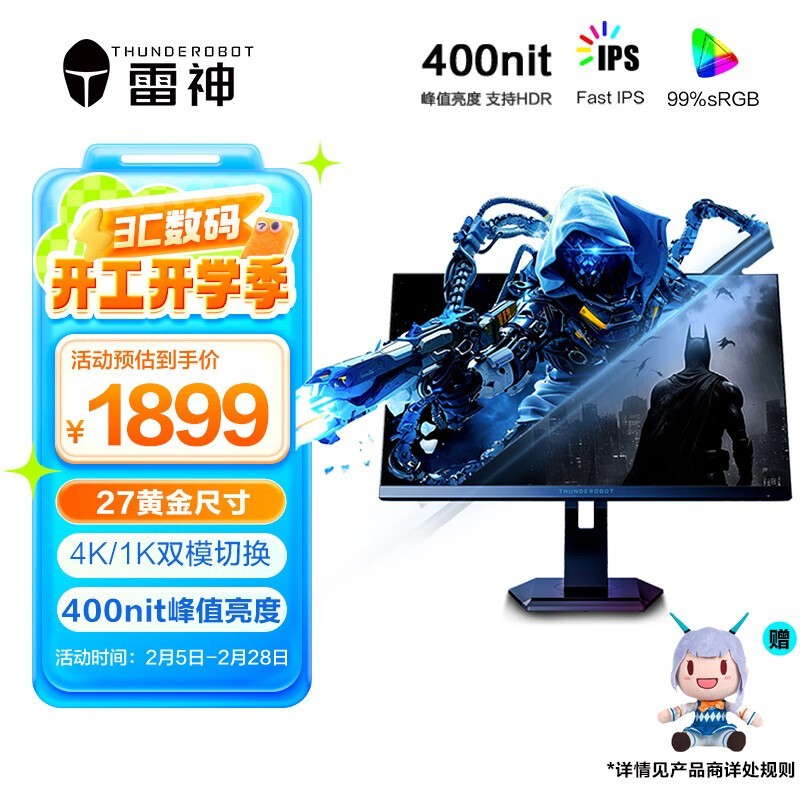 雷神ZU27F160L显示器320Hz刷新率仅1899元到手