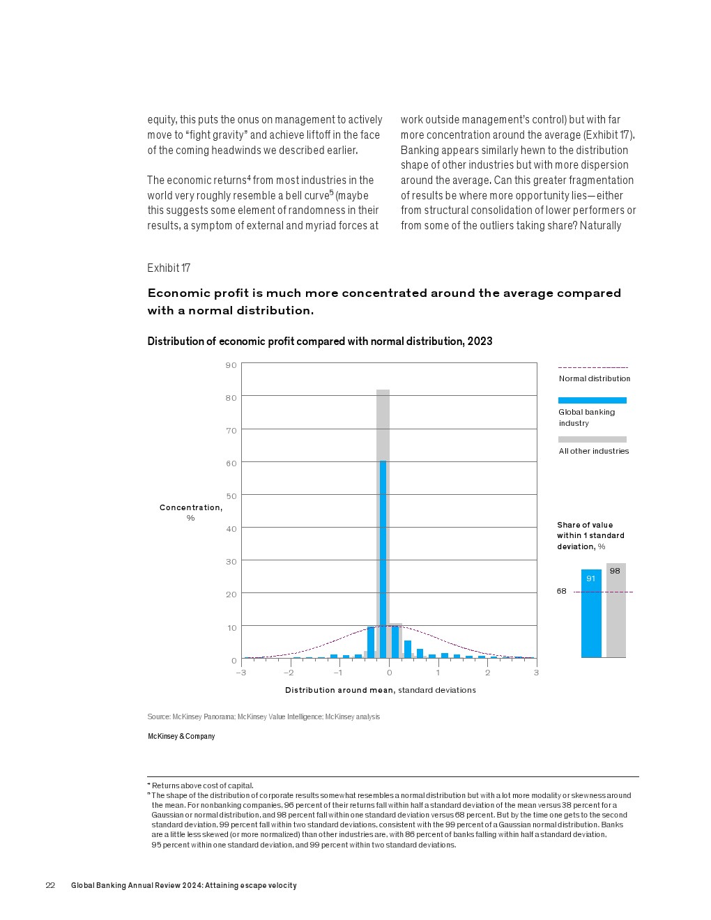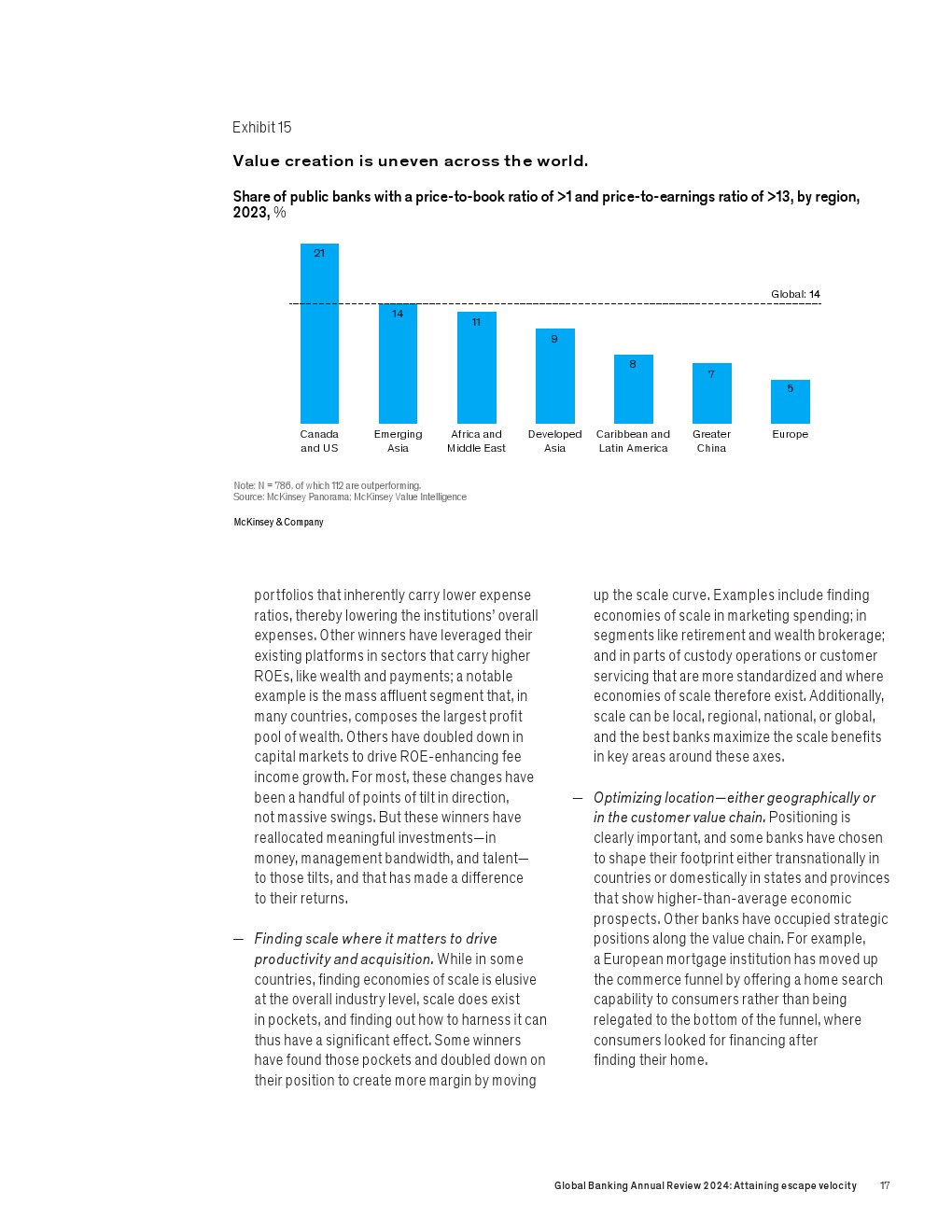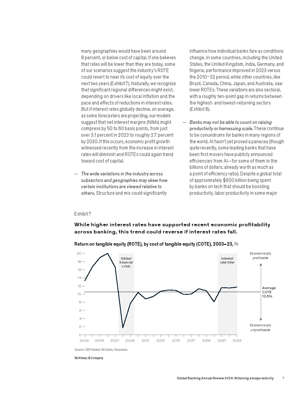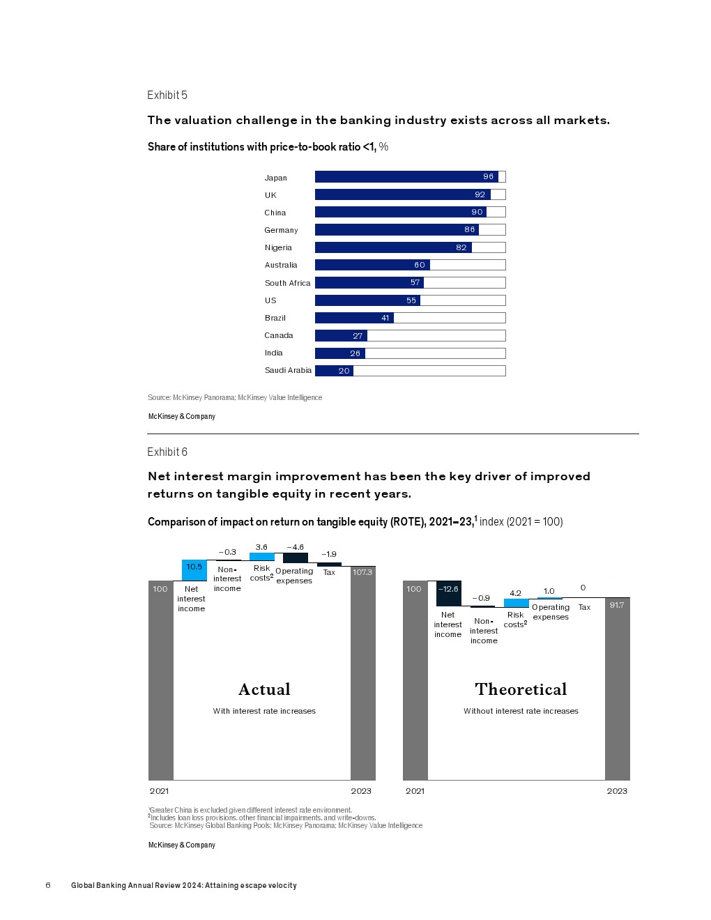 对其他行业来说,好消息是情况可以得到改善。事实上,在过去的五年里,大约10%的行业的有形股本回报率提高了5个百分点。银行业要想恢复其市盈率,管理团队需要召唤出这些赢家的活力。