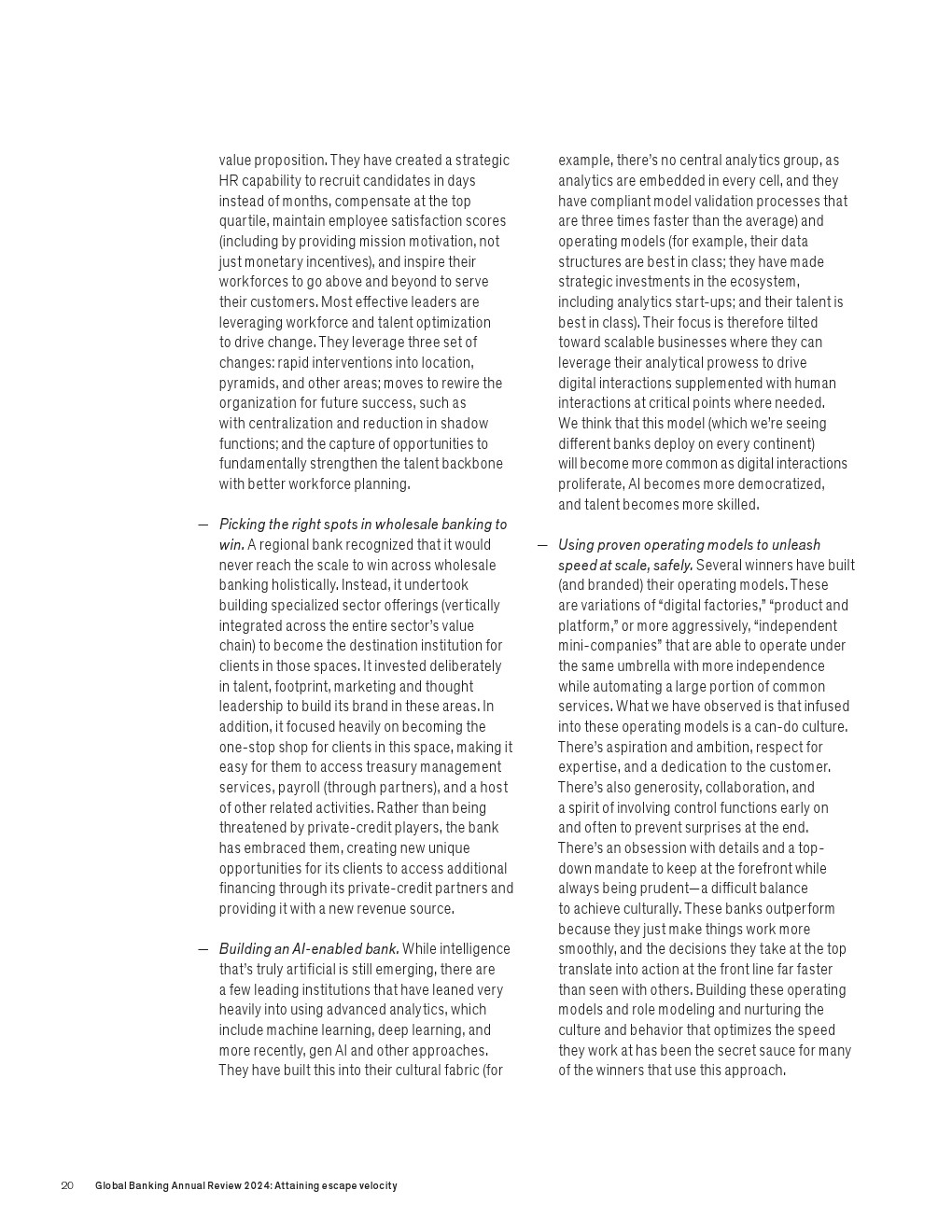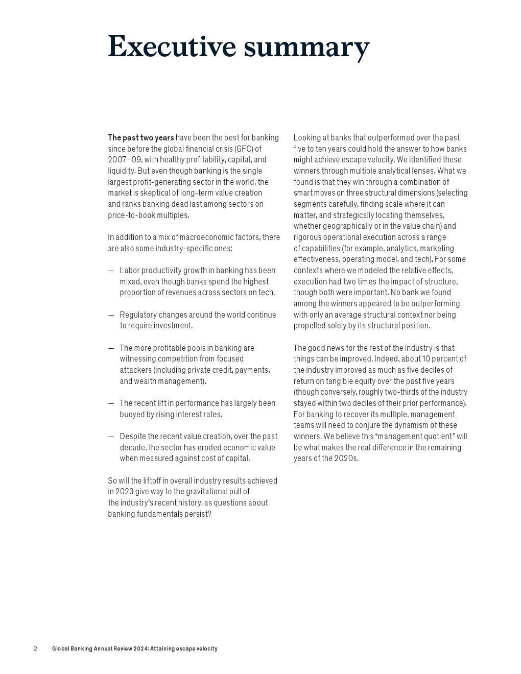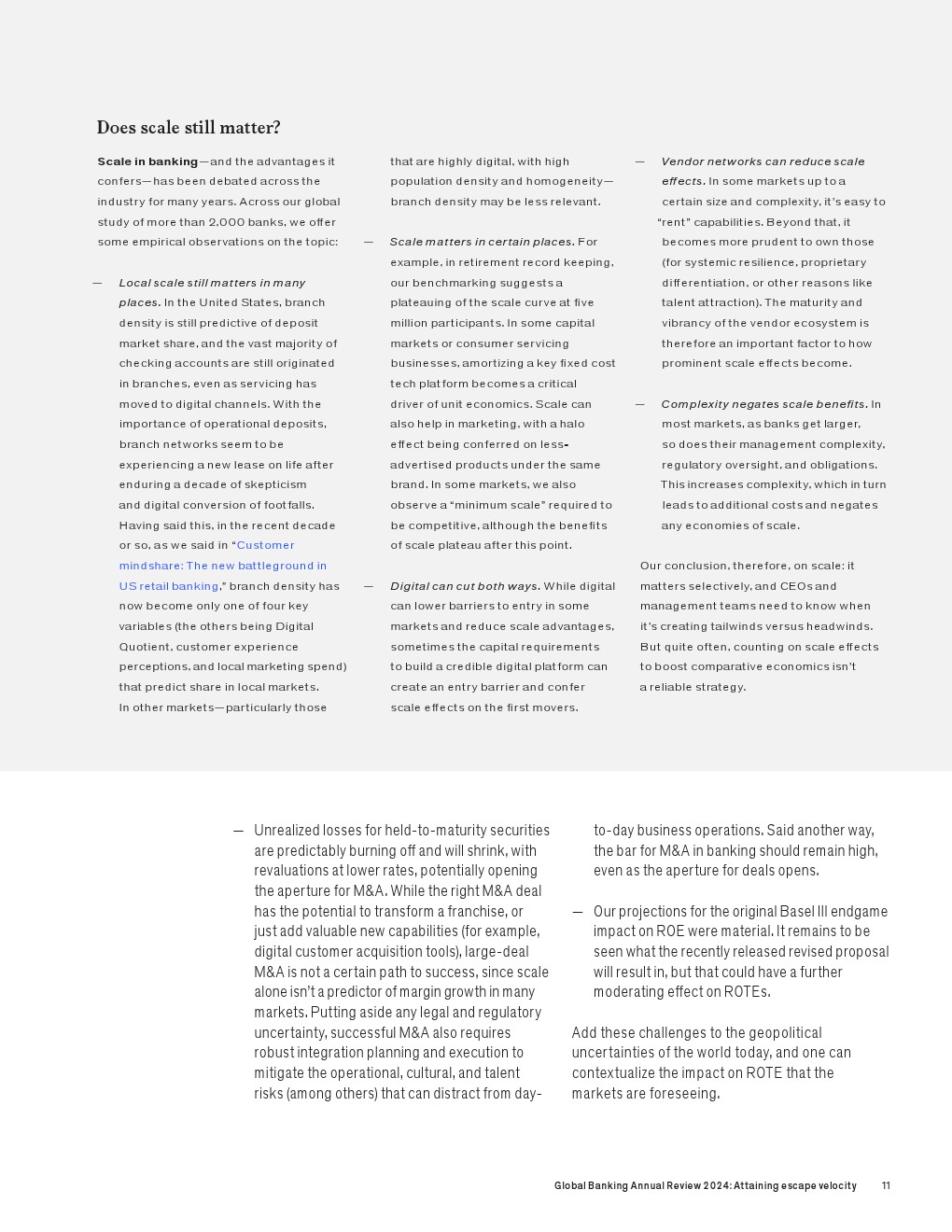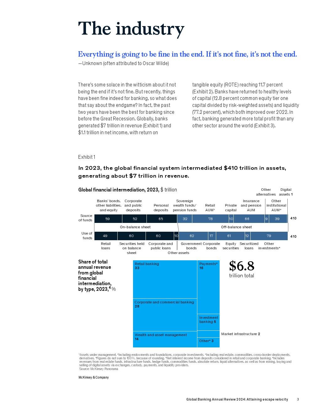-银行中更有利可图的资金池正面临来自集中攻击者的竞争(包括私人信贷、支付和财富管理)。