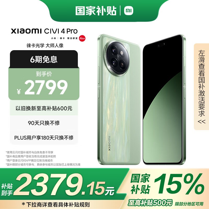 小米Civi 4 Pro春野绿版促销到手2363元享多重新体验