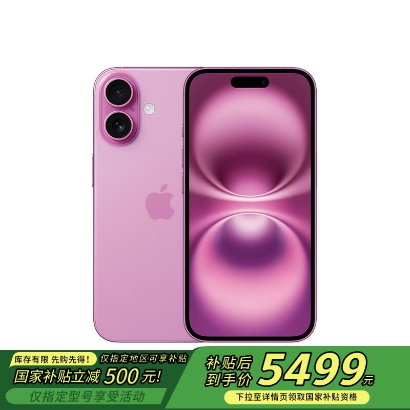 苹果iPhone 16 5G手机粉色256GB京东特惠仅5469元