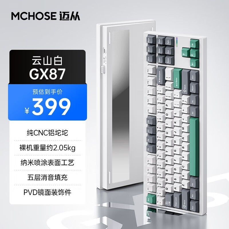 迈从GX87铝坨坨客制化机械键盘云山白抹茶拿铁轴V2三模热插拔