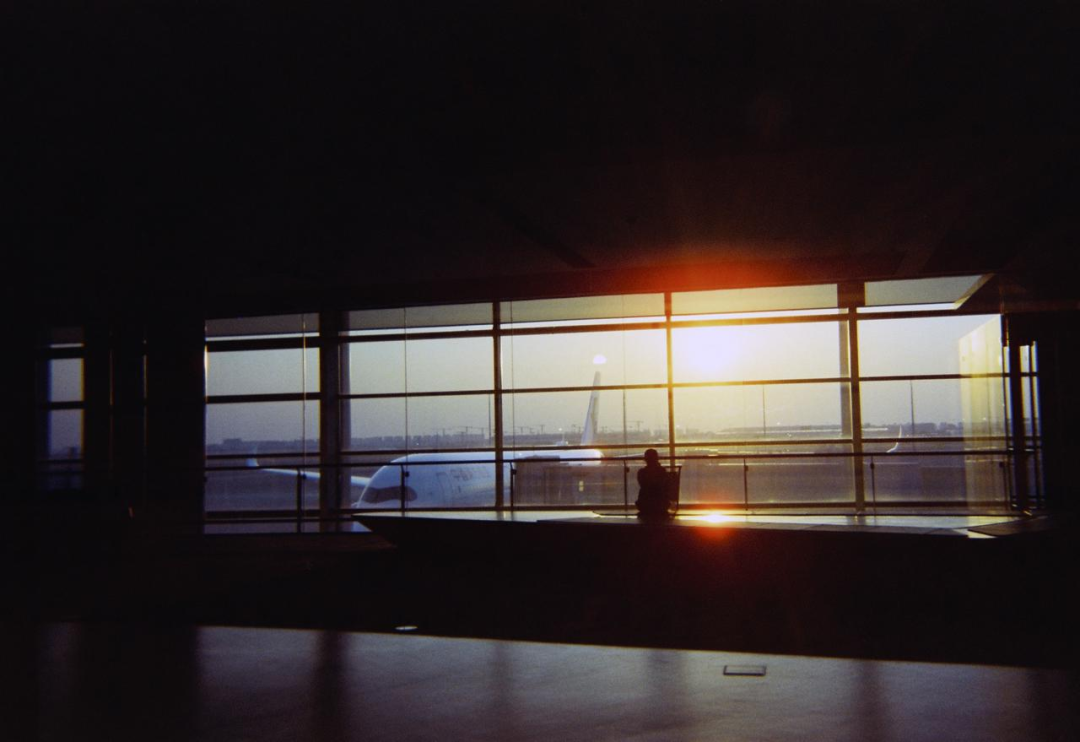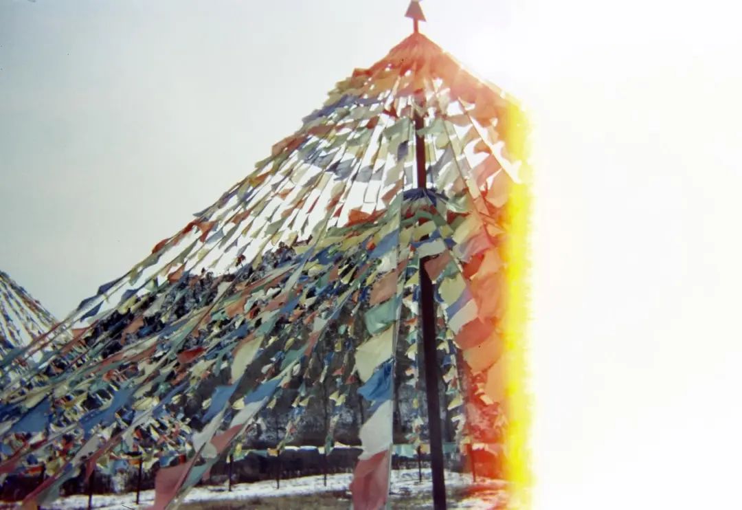 经幡在阳光下熠熠生辉,一次性胶片机能力有限没有拍出光辉,却因为漏光而热烈地“燃烧起来”,让我想起那天在上海机场拍到的温暖夕阳。这种“出其不意”的相遇,其实每天都在上演。
