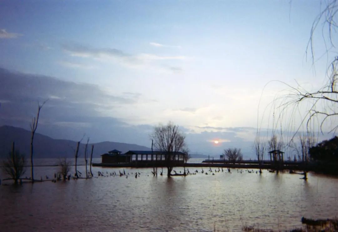 第一次准备按下快门,是在大理的早上,来到才村码头看日出,我们对追日出日落总是有特别的感情。云多天阴,太阳久久看不到,想着拍一张先练练手,太阳却在快门按下的一瞬间出来了。