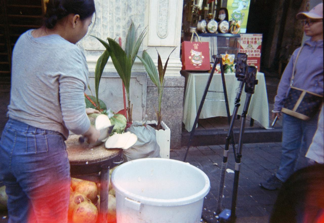 印象最深的,是一个清秀的女生正在边卖椰子边直播。我刚定格下她的刀挥舞的残影,她就已经将椰子切成了球形。真正打动我的,不止是她具有观赏性的“切椰子表演”,是她开心地传达着她的价值观:虽然我做的这个工作看起来不是特别光鲜,但并不是只有男生才可以切这么好,我也是有力量的女性。