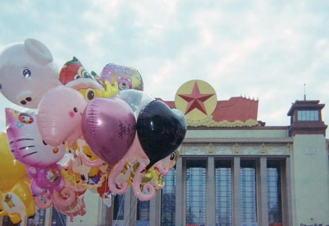 热闹街头和景点总有色彩斑斓的气球,以前很少注意到它们,不是消费群体,气球也不是多好看的款式。但当看到气球上印着“新年快乐”和“2025”等字样时,忍不住按下了快门。在我的拍摄理念里,捕捉带有特定时间属性的瞬间,也是胶片摄影的意义所在。
