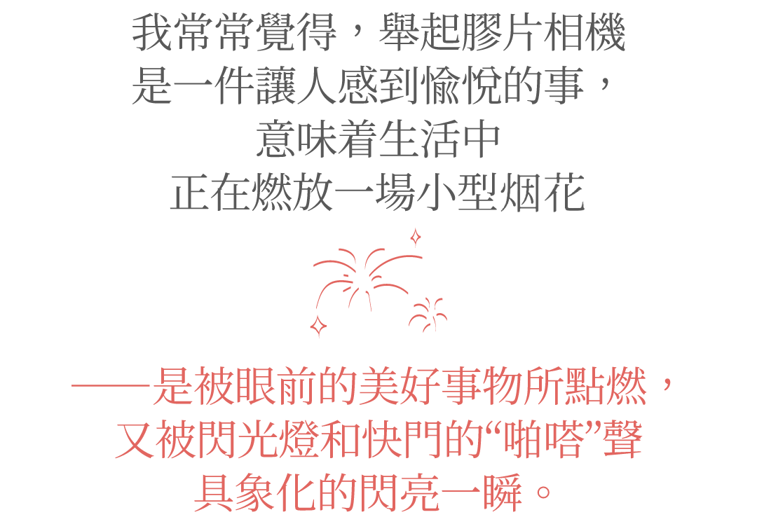 与烟花灿烂后只剩一片漆黑不同,胶片相机还会将画面连同情感凝固为一张照片,永远存在。