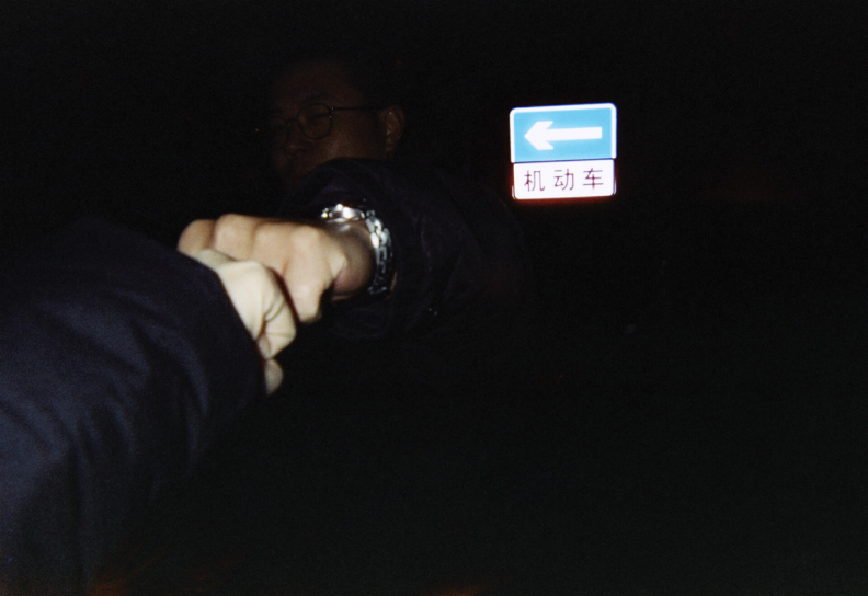 Y 和 R 是我许久未见的两位朋友,这次从国外回北京过年。我们在家玩起之前沉迷的桌游,笑得喘不上气。分别时已经后半夜,我把他们送到巷子口,车到了后 R 折回来和我碰拳头,Y 坐在后座喊下次见,我闪下这个瞬间,希望它帮我度过下次想念他们的时间。