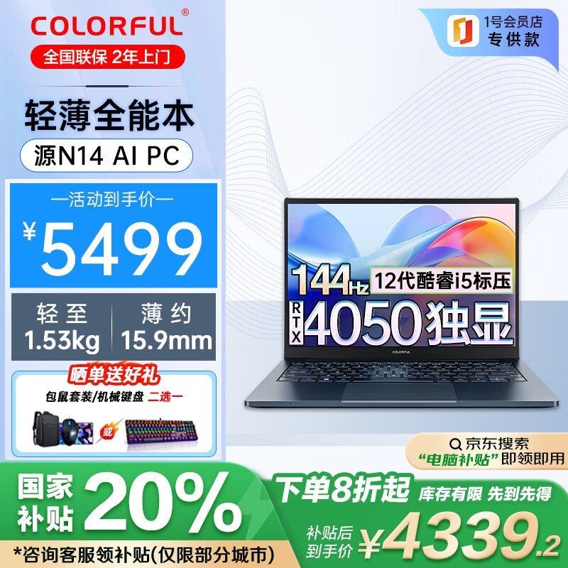 七彩虹源N14轻薄笔记本电脑学生设计游戏全能型京东到手价5489元
