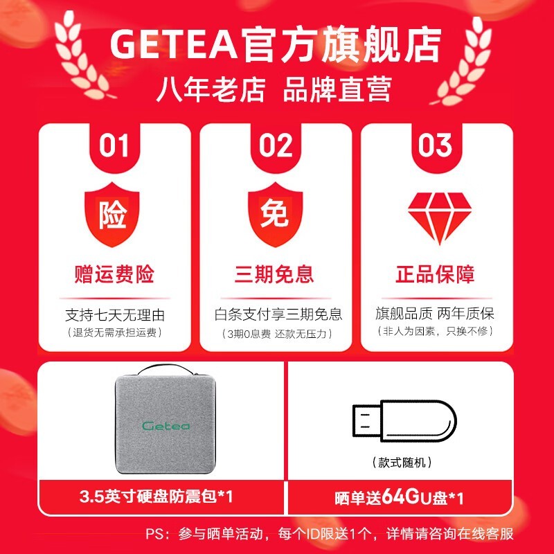 GETEA捷移12TB企业级移动硬盘仅949元赠防震包