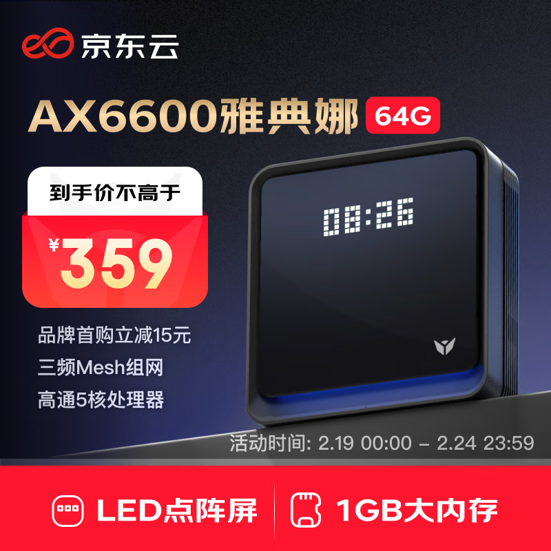 京东云无线宝路由器AX6600雅典娜高速稳定上网仅319元