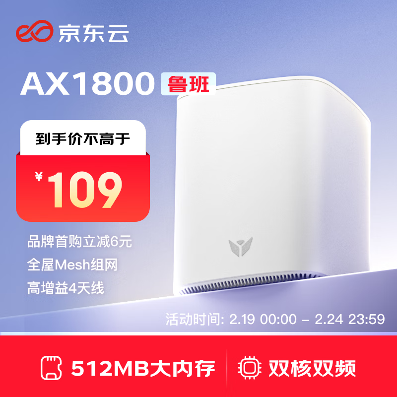 京东云无线宝路由器AX1800鲁班64G畅享版仅89元