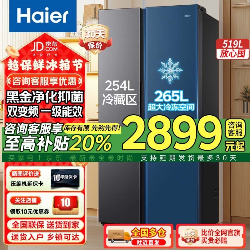 海尔519升对开门冰箱巨能冻系列京东特惠2699元