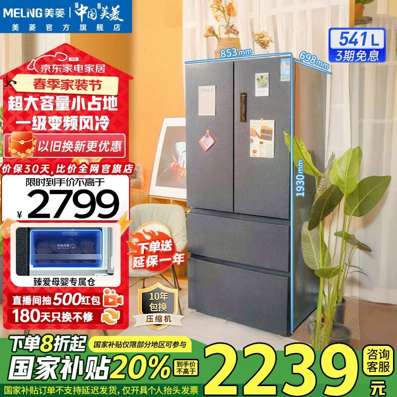 美菱541升风冷多门冰箱BCD-541WPU9CY仅2159元