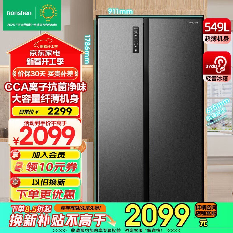 容声549升双开门冰箱BCD-549WD11HP促销中到手1257元