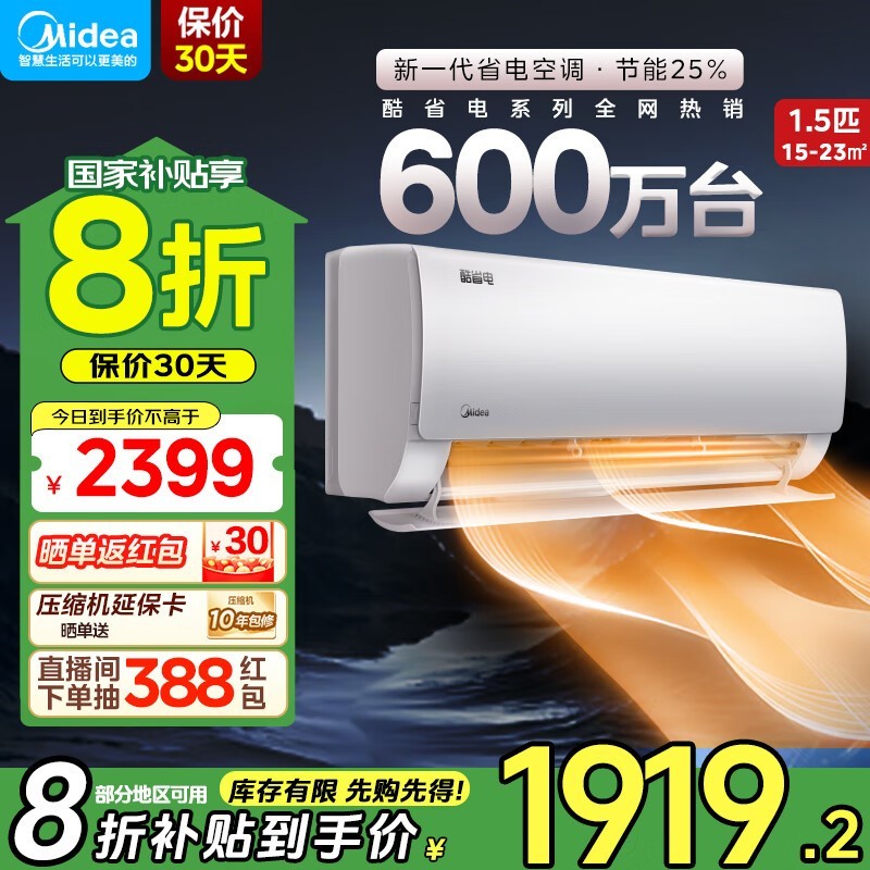 美的1匹壁挂式空调i青春II系列新一级能效仅1665元
