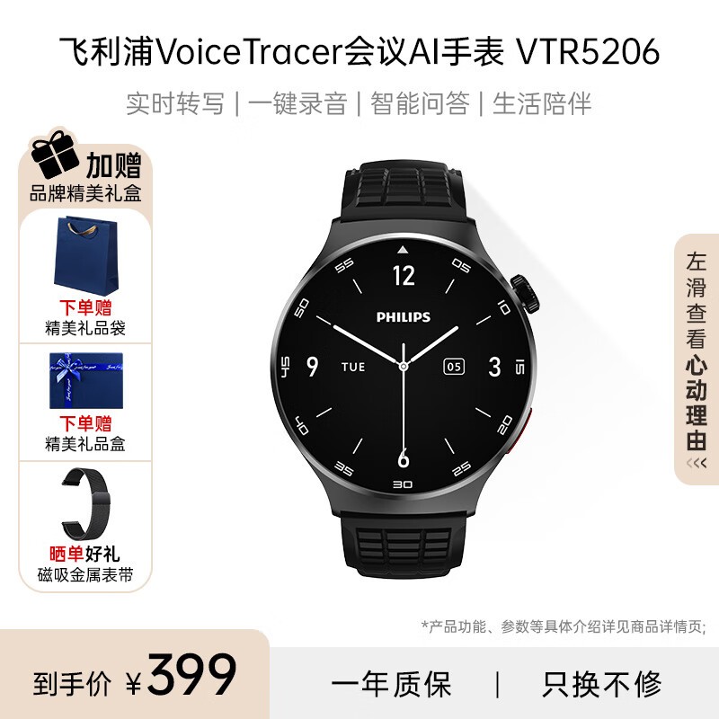 飞利浦智能手表VTR5206商务时尚高效工作生活两不误