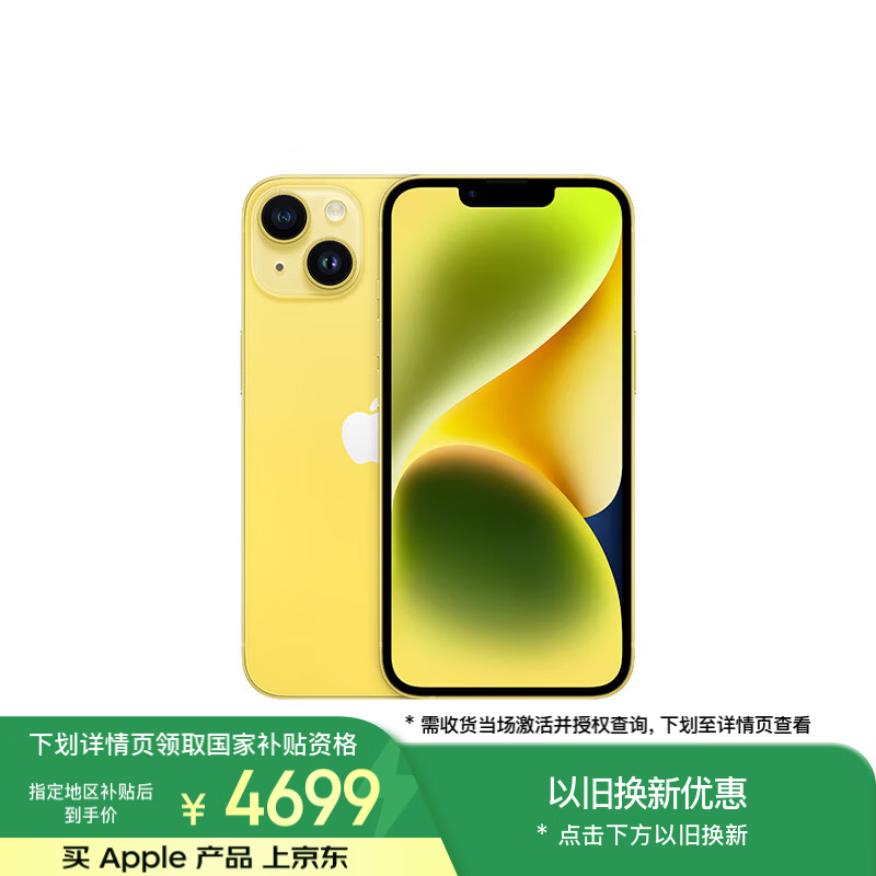 苹果iPhone 14 256GB 5G手机 黄色 京东活动价4673元