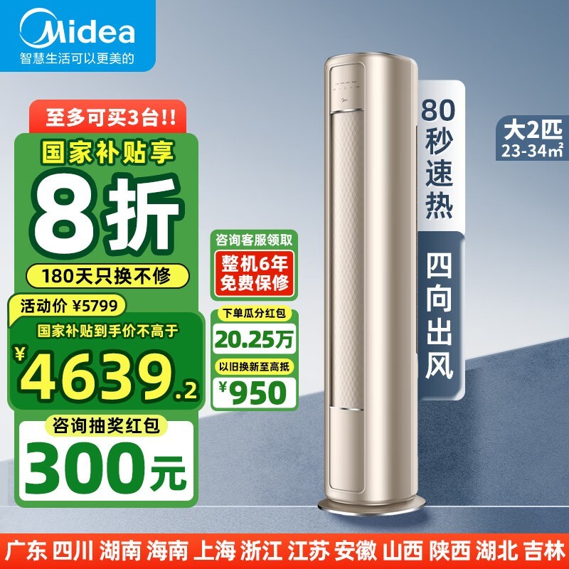 美的风尊KFR-51LW立柜式空调2匹新一级能效5299元到手