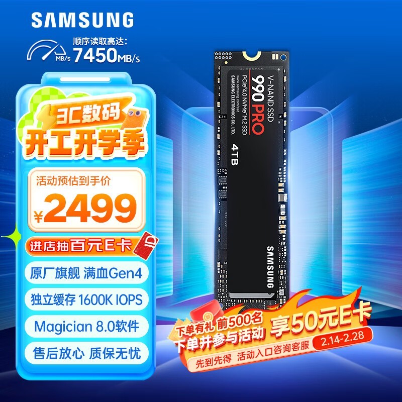 三星990PRO固态硬盘4TB版京东促销到手仅2236元
