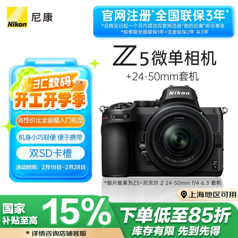 尼康Z5全画幅微单相机套装上海地区特惠到手价5899元