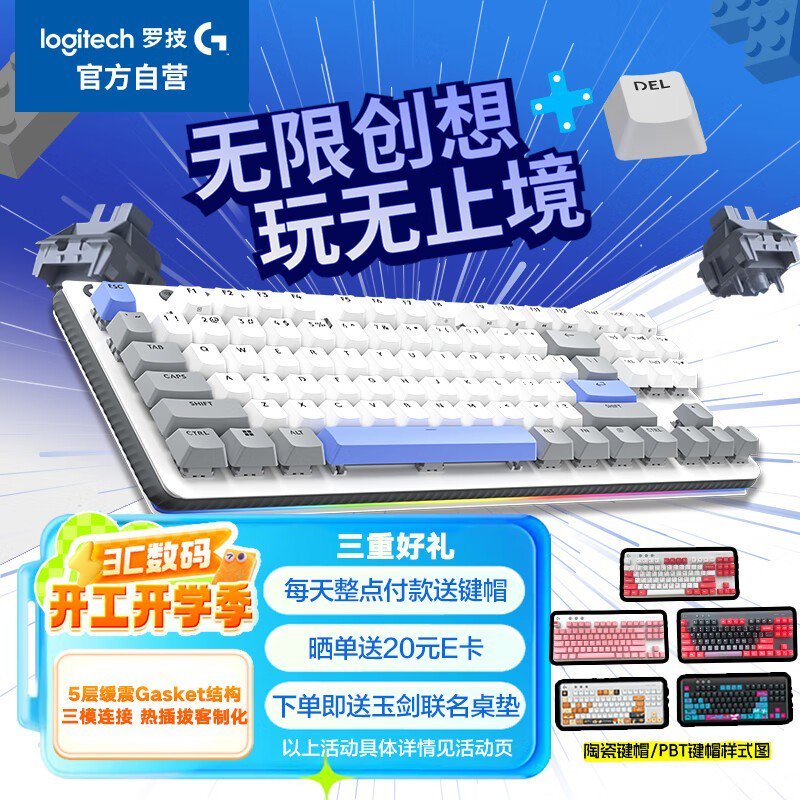 罗技G517无线蓝牙三模游戏键盘白色TKL客制化热插拔键轴