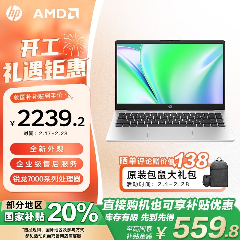 惠普锐14笔记本电脑2023款七代锐龙版性能强劲轻薄便携
