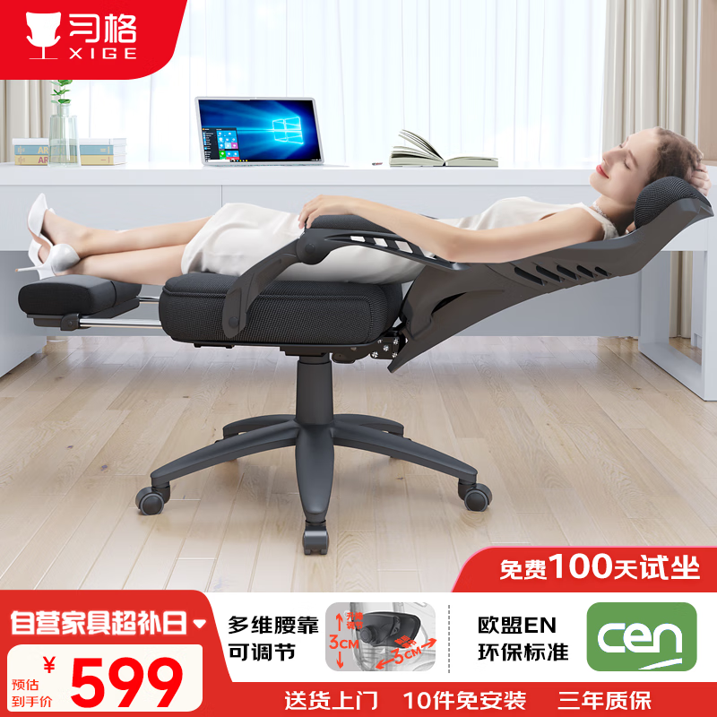习格电脑椅黑框黑网款带搁脚可躺平京东活动价504元