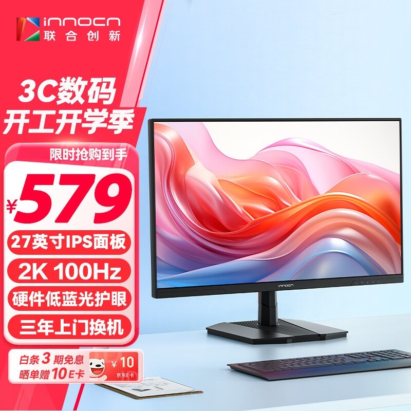 联合创新Innocn 27D1QL显示器2K分辨率100Hz刷新率仅489元