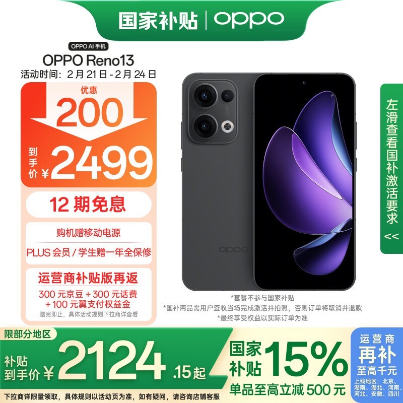 OPPO Reno13 5G手机京东特惠价2112元起