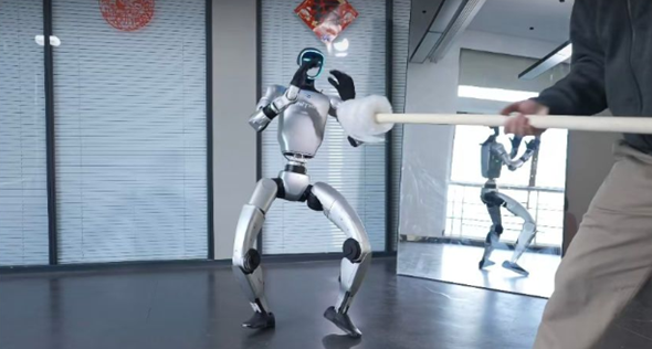 这款机器人身高127厘米,体重35公斤,拥有23至43个关节电机,行动灵活自如,能够完成动态站起、坐下折叠、舞棍等高难度动作。其精巧的设计和强大的运动能力,使其成为各类活动的“吸睛利器”。