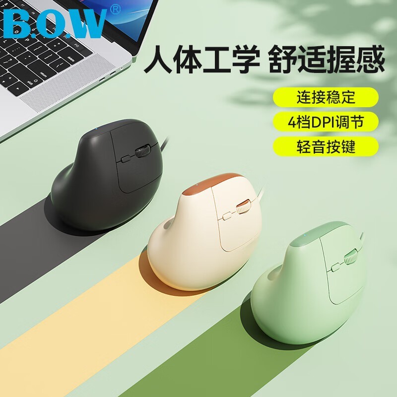 B.O.W M190U人体工学垂直鼠标舒适手托静音键京东49.9元
