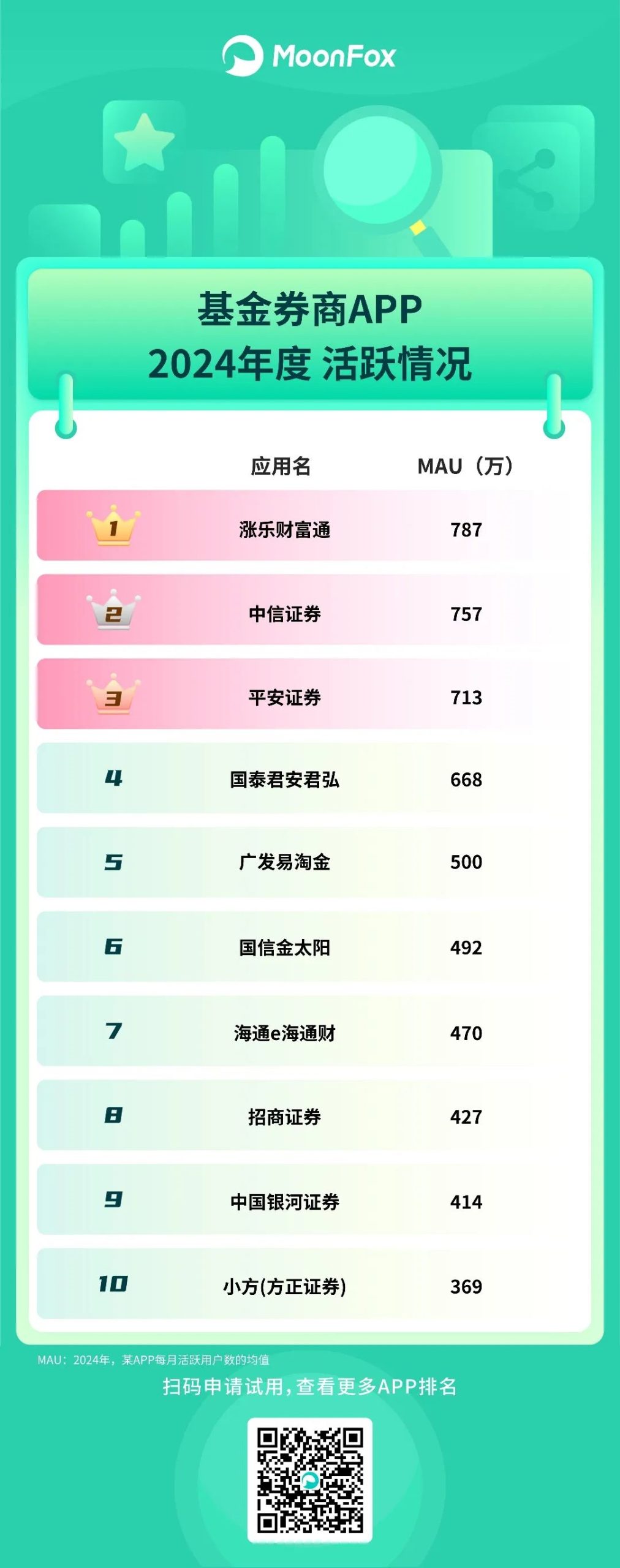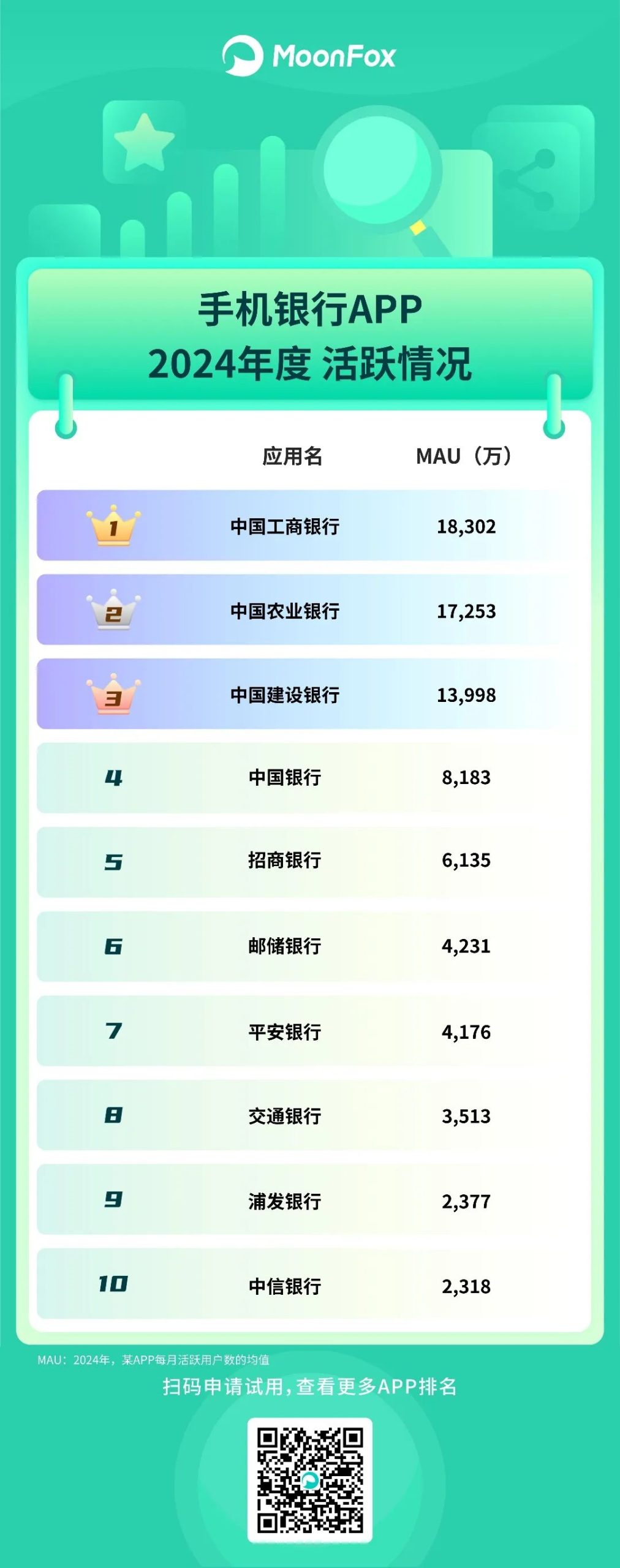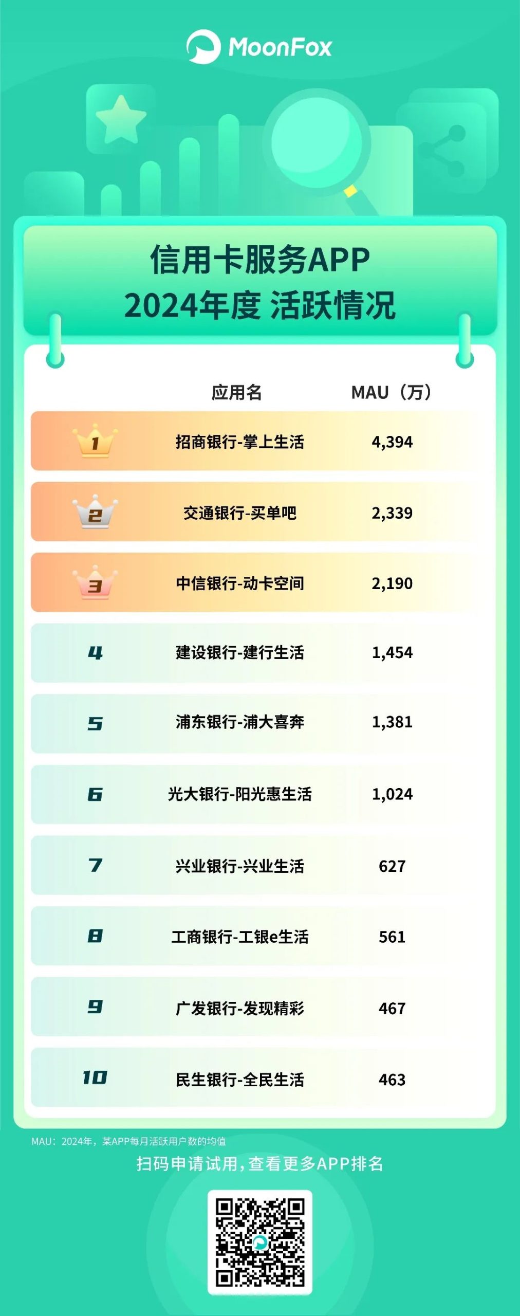 其他榜单还有:信用卡服务、基金券商、手机银行、用车服务、共享出行、在线旅游、求职招聘、数字音乐、出海应用,以及黑马App。
