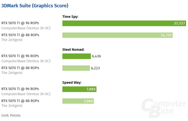 这位网友发现后就使用RTX 5070 Ti测试了一下3DMark基准跑分,结果对比如下: