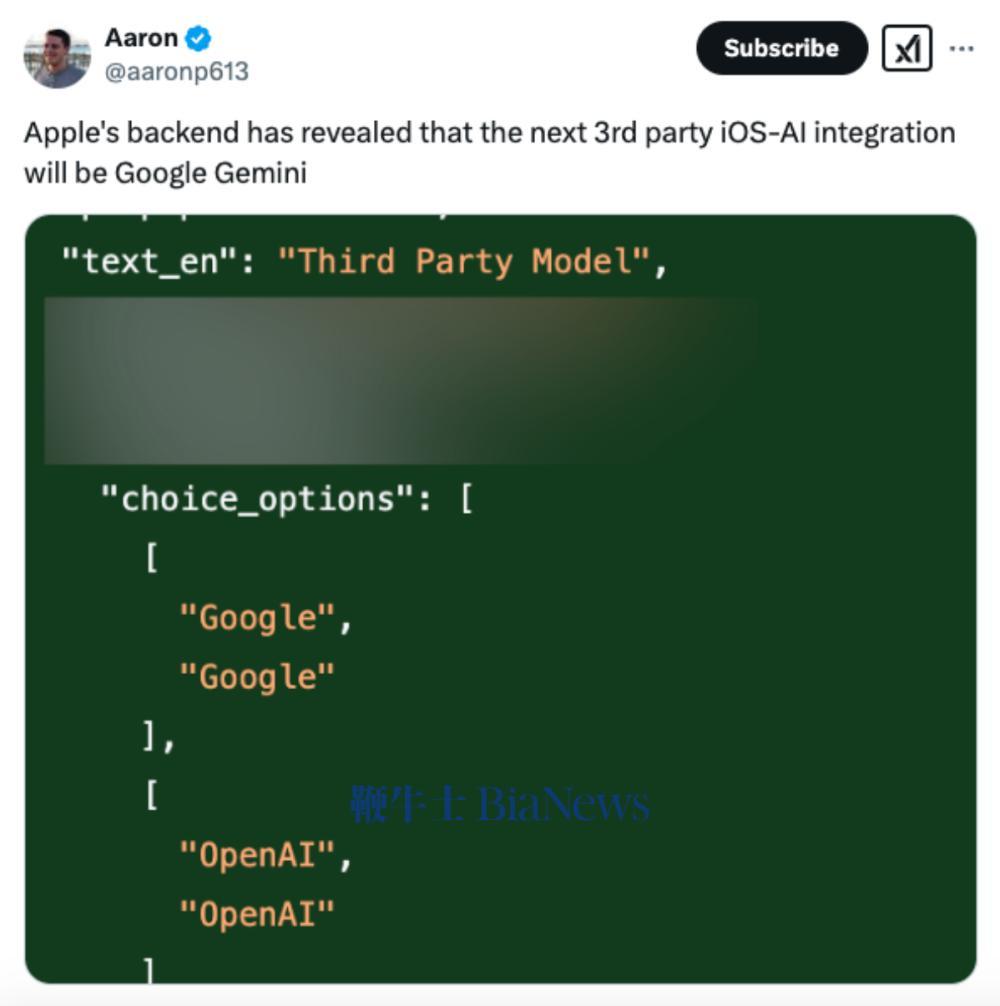 在 WWDC24 上,苹果软件高管 Craig Federighi在一次采访中表示,他们希望提供与其他 AI 模型的集成,包括 Google Gemini。根据最新泄露的消息,这种集成可能在不久的将来实现。