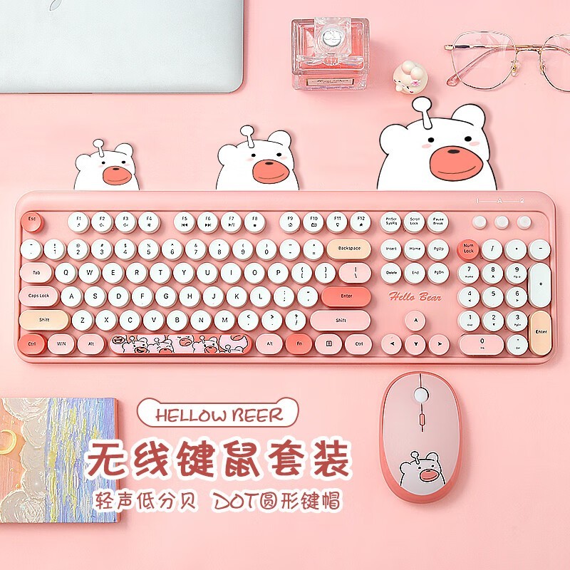GEEZER Hello bear无线复古朋克键鼠套装奶茶粉混彩可爱风
